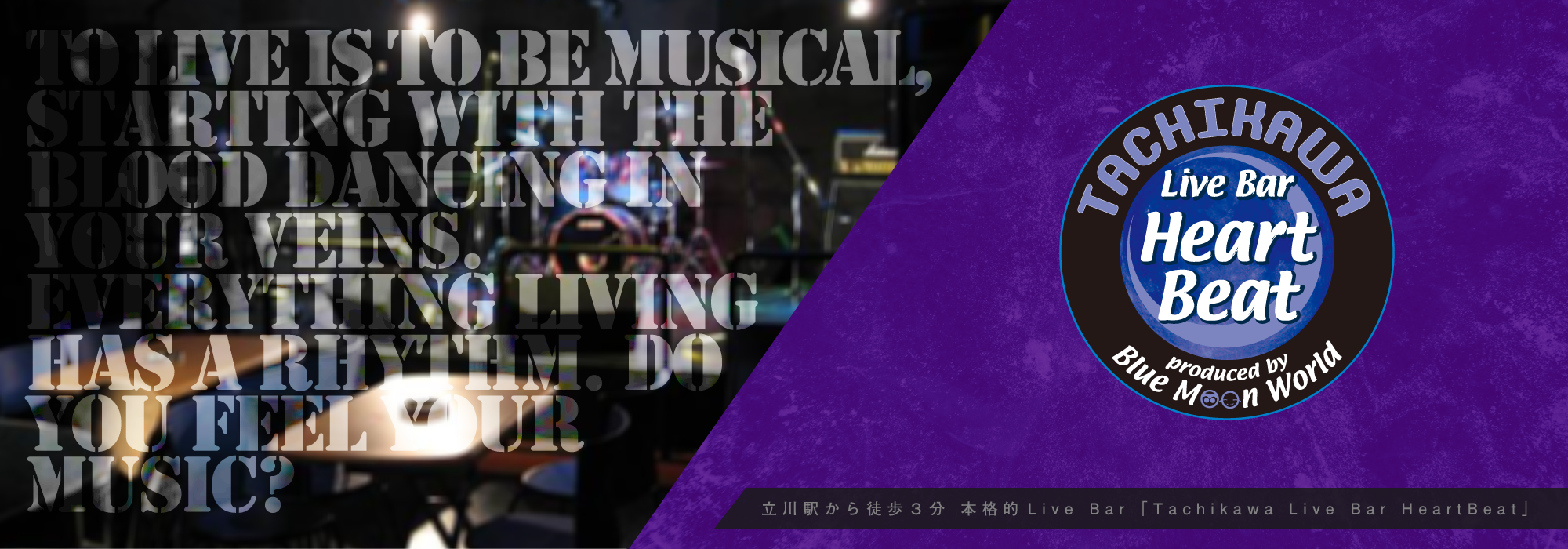 立川Live Bar Heart Beatは 感染対策を行った上で徐々に営業を再開しております。 ホールレンタル・ライブ出演依頼受け付けております。 日程等ご不明点等ありましたらお気軽に下記よりお問い ...